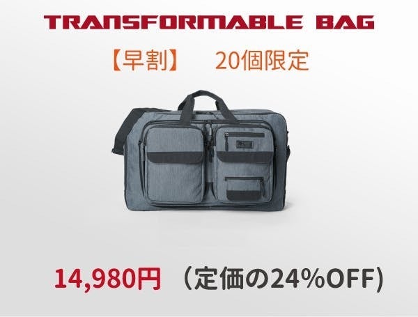 もっと見るトランスフォーマブルバッグ 配送完了しました