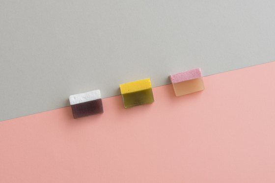 つるの玉子の場合、コーンスターチに玉子型の穴を作り、その中に溶けたマシュマロを流し込んで固めることで整形していますが、その方法ではできることが限られてしまいます。もっと自由な発想でマシュマロを取り入れるため、マシュマロの製造方法からの見直しも何度となく行いました。卵白を入れるか入れないかでもマシュマロの状態はかなり異なりますし、果汁を加えただけでそれまでの作業工程が通用しなくなったりと失敗の連続でした。