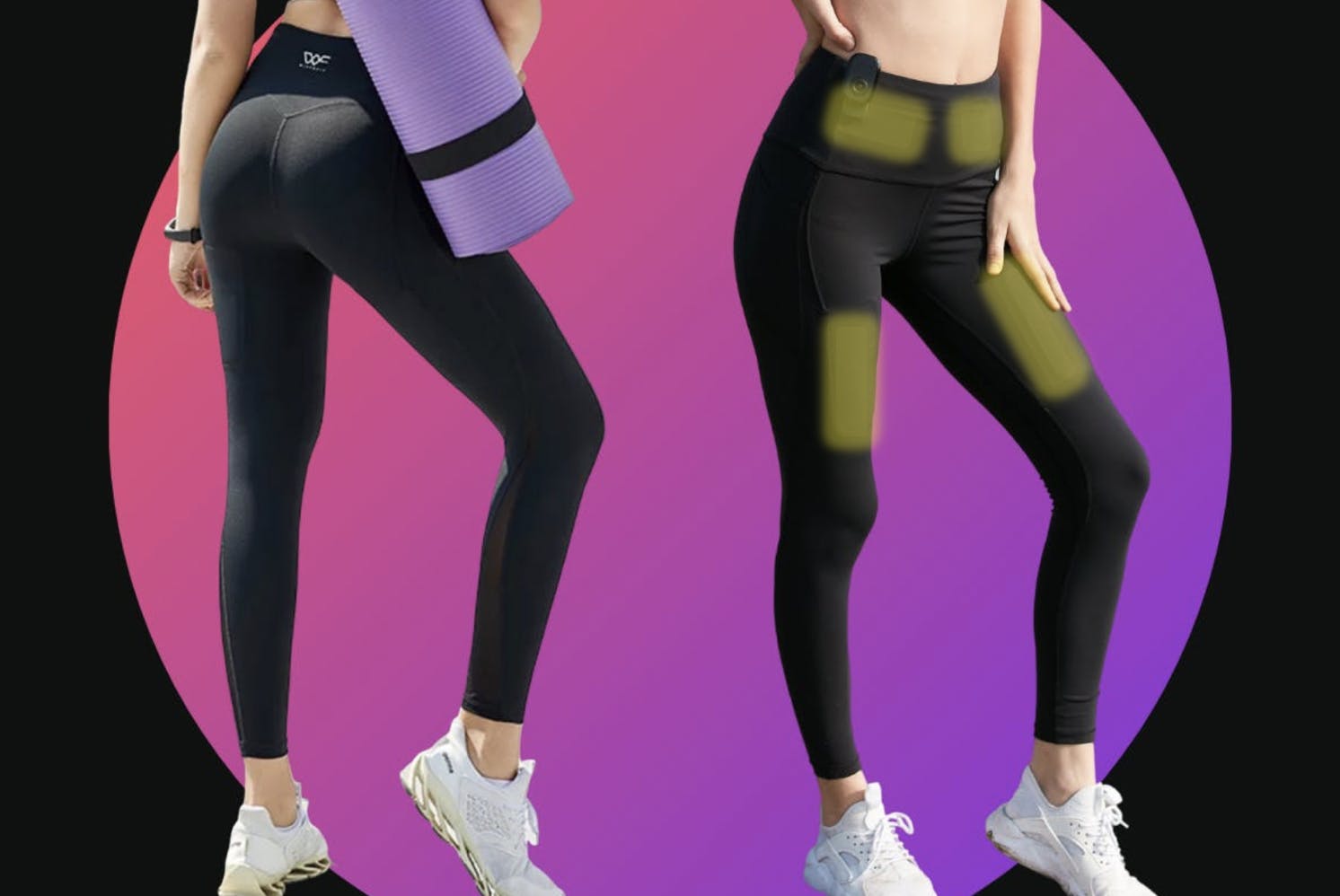 EMSレギンスパンツは腹部に2つ太ももに2つ合計4個のパッドを搭載。