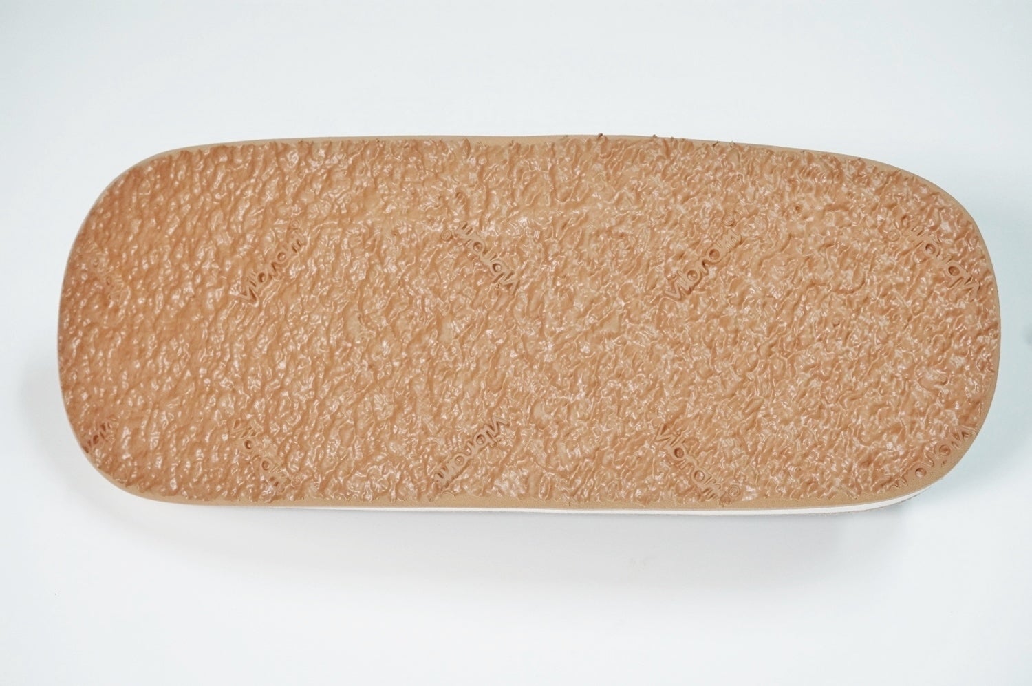そこで、「サン駄 (江戸前 sandal)」では、内側のみ「クレスタ」と呼ばれる柔らかい素材にしました。