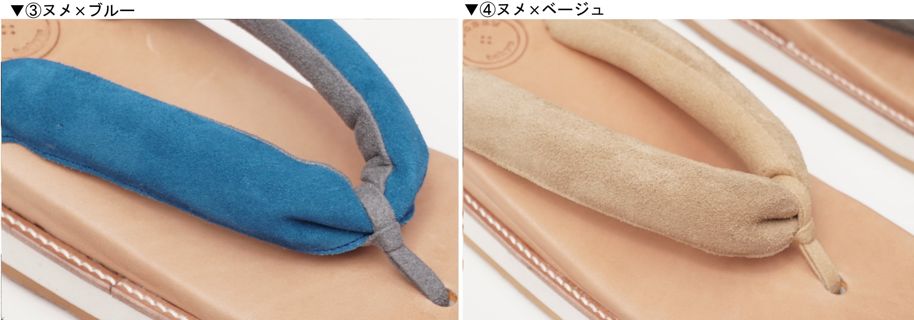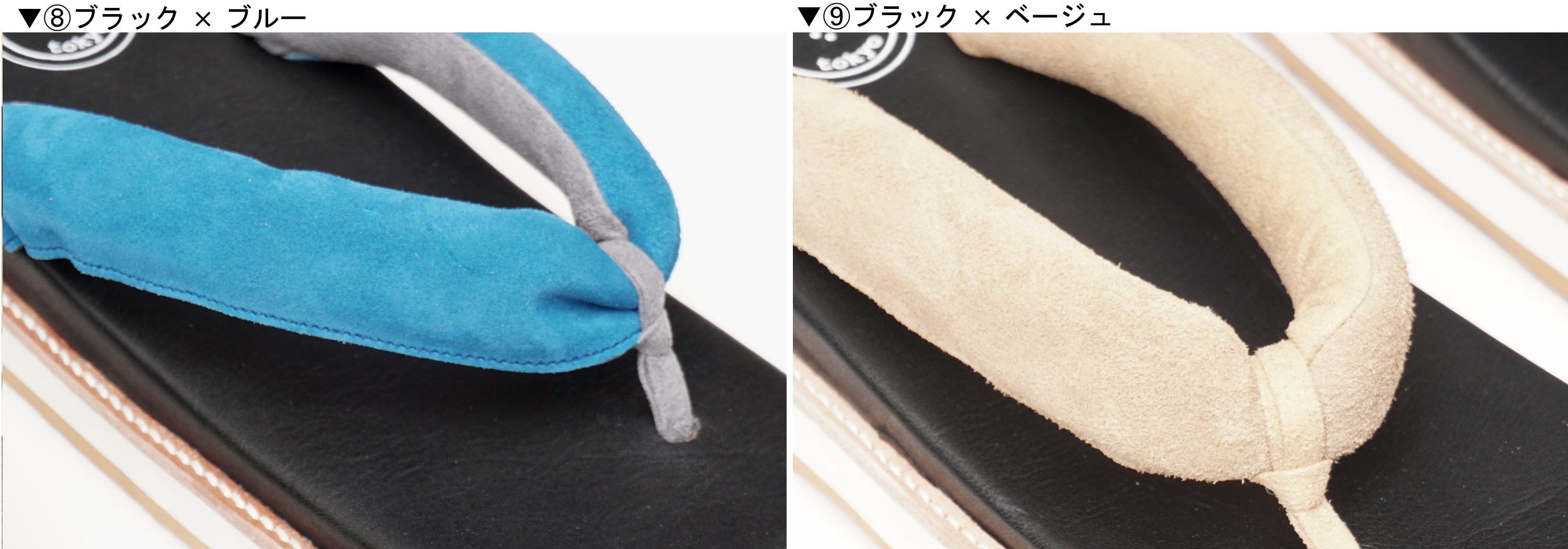 また、カラーは、全10パターンをご用意しました。鼻緒と土台の革材、それぞれお好みの組み合わせをお愉しみください。