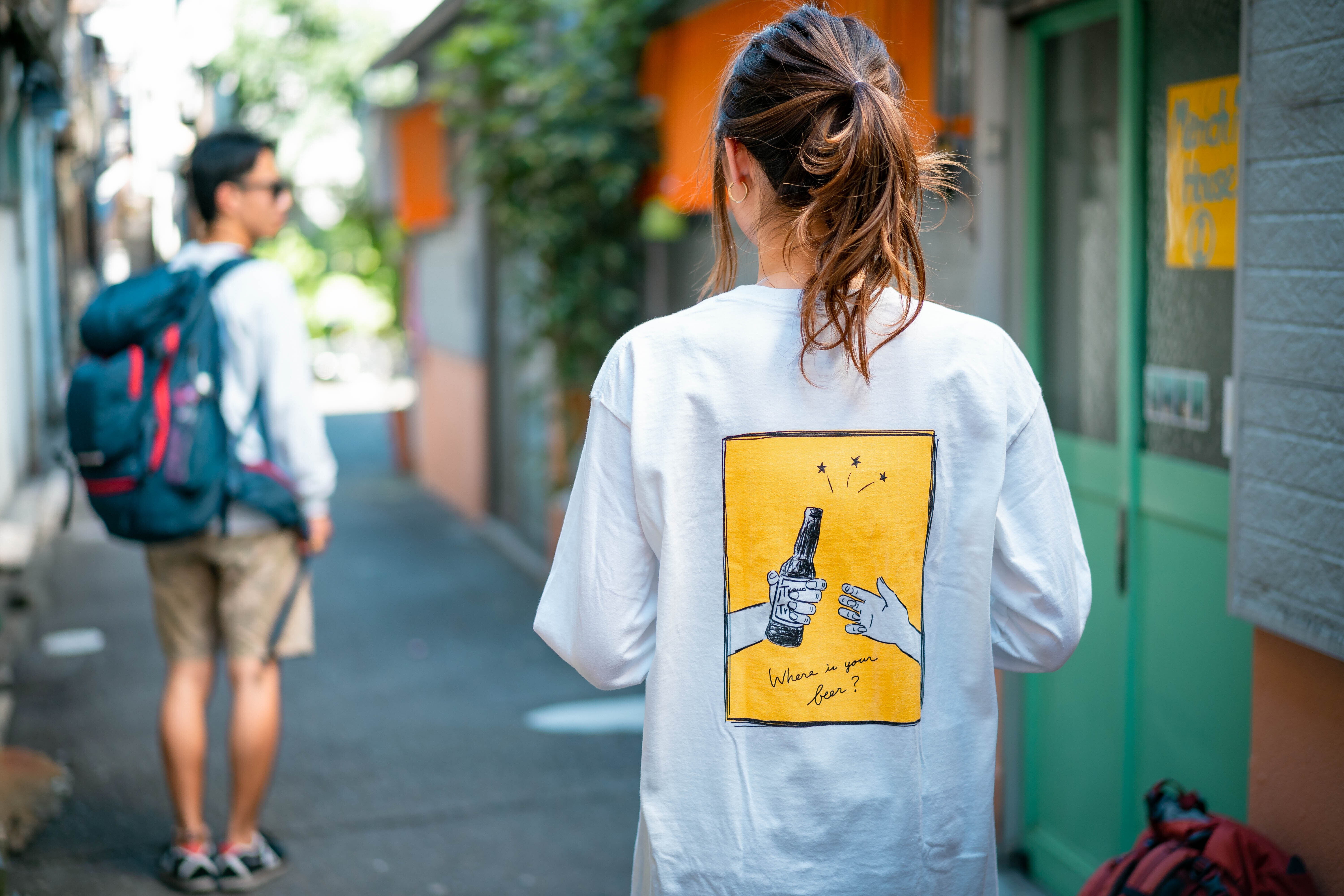 今回のラベルストーリーは、僕自身を描いています。旅をしながらノンアルビールを醸造するバックパッカー醸造家で、それをシルエットで表現しています。