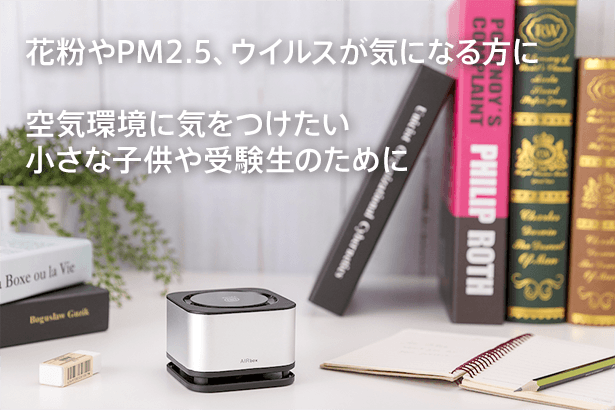 AIRboxは、花粉や細菌、PM2.5など空気中の有害物質を分解し、タバコやトイレ、カビなどの嫌な臭いもキレイに消臭してくれるので、風邪など病気に注意を払いたい人にもオススメです。