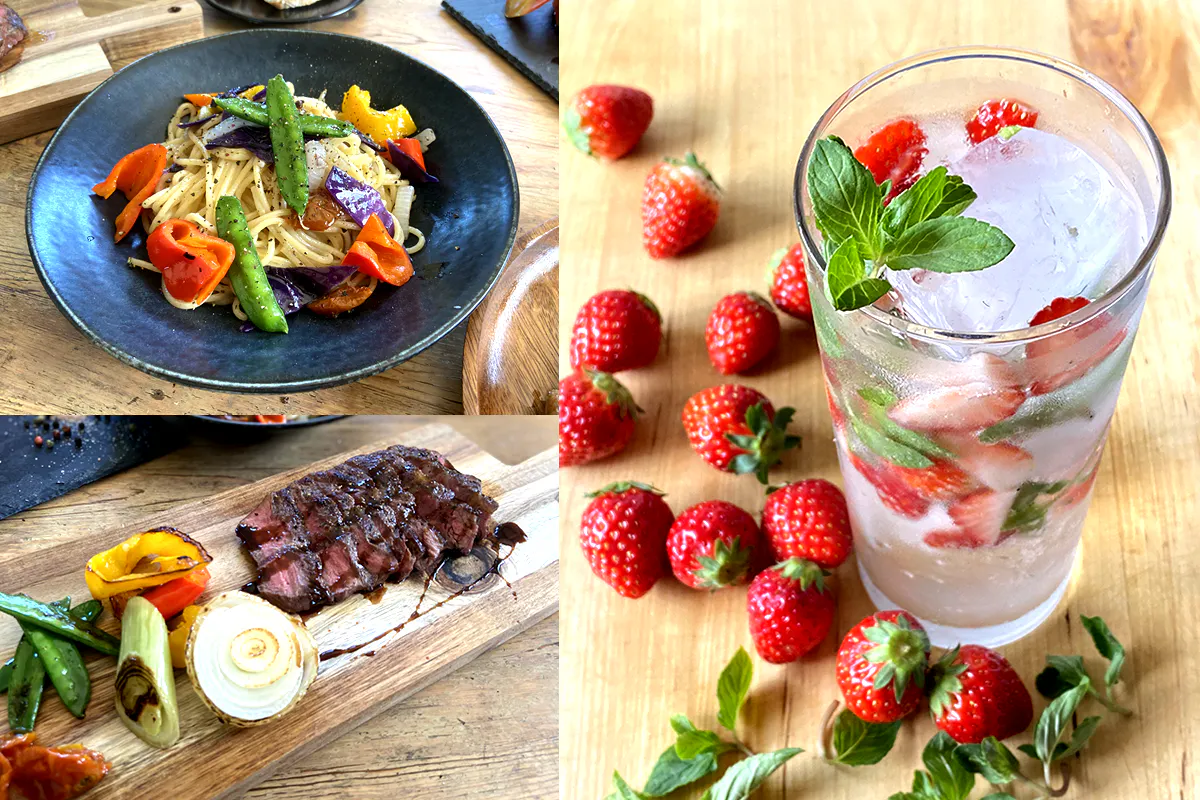 【食(ダイニング)】は東京で経験を積んだキッチンメンバーを迎え、地元の食材や栃木県の名産を今までになかった組み合わせで楽しんで頂けるようなメニューを考案しております。
