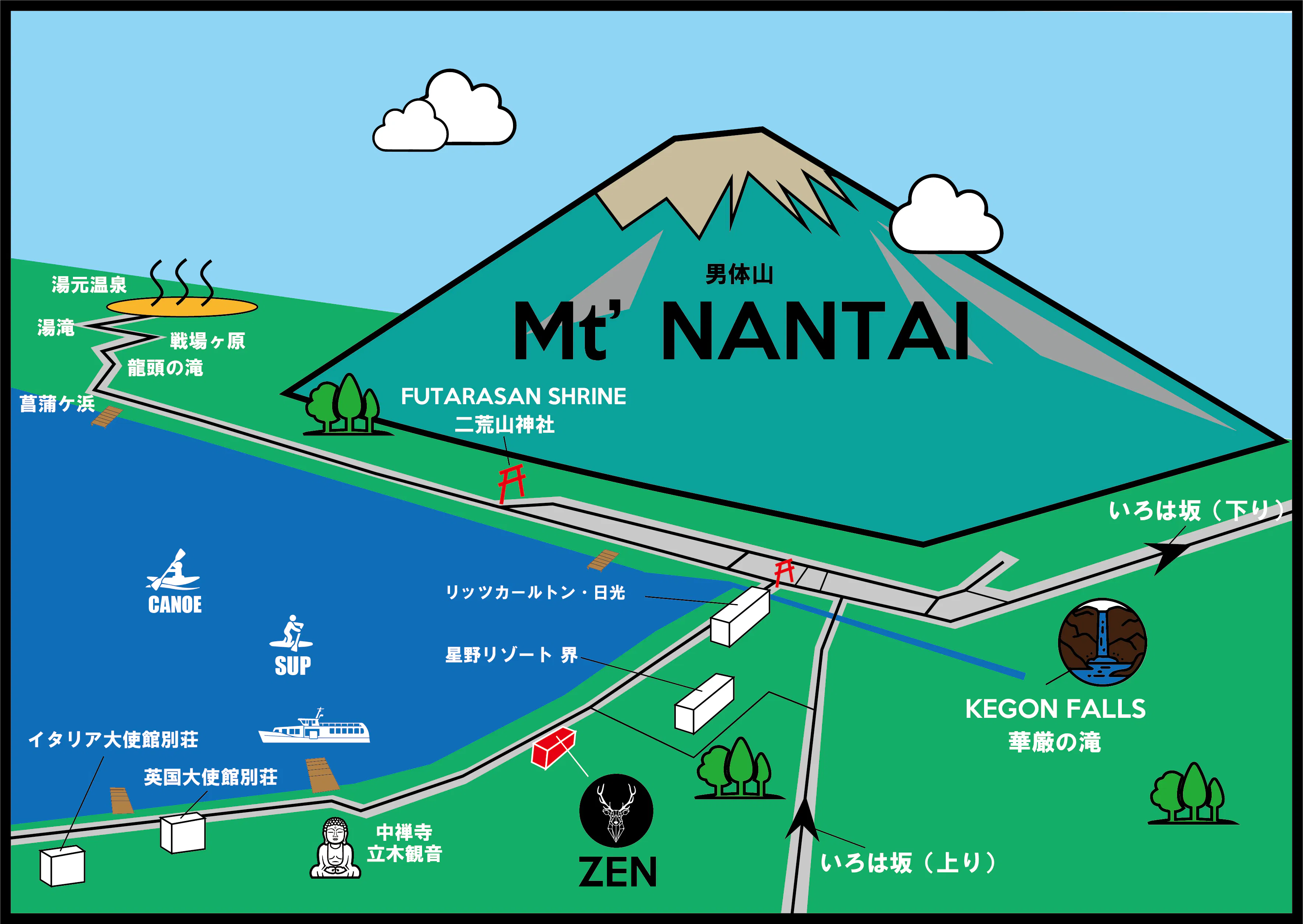 中禅寺湖の「禅」より名前を頂いた『 ZEN 』は、カフェバー、アクティビティ施設を完備。