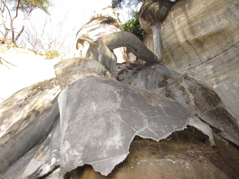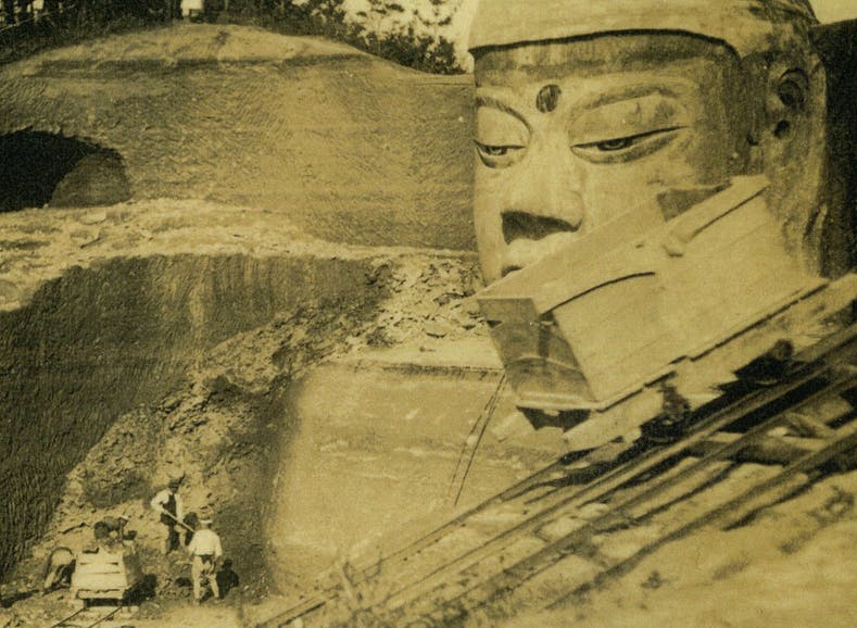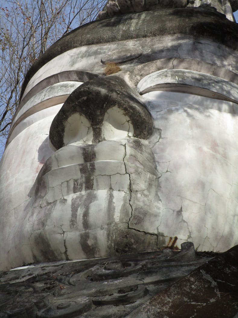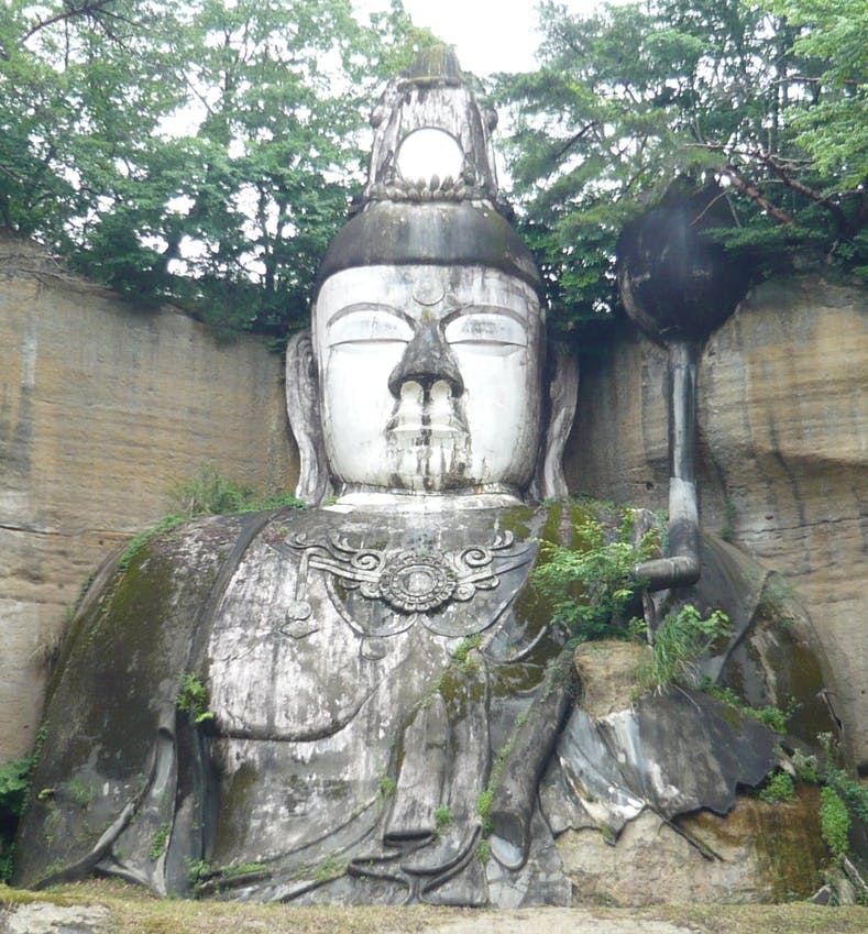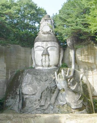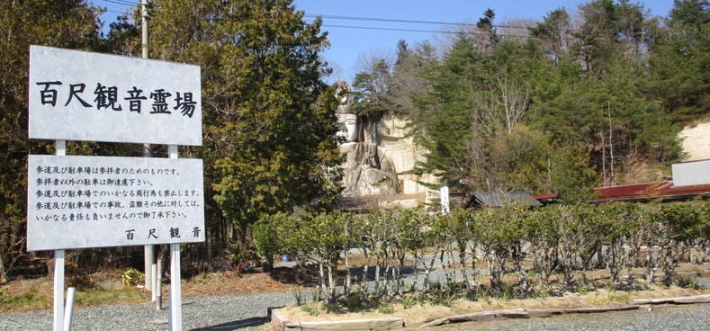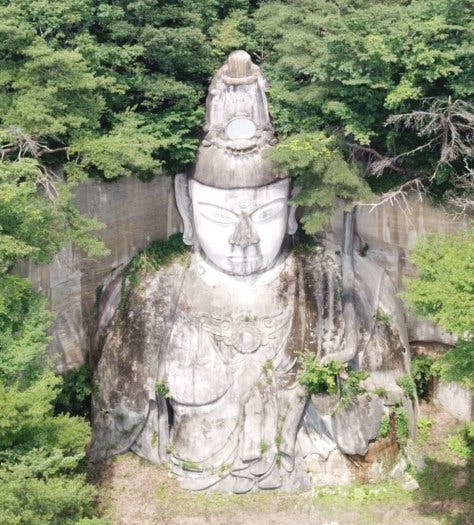 福島県相馬市には百尺観音像があります。山肌に掘られた摩崖仏です。これは88年前に建設が始まりいまだ未完の観音像です。約60年前に八十八尺(約26m)の高さまで構築しそこで止まりました。高さ百十八尺(約36m)の完成を目指しているのですが、60年の風雪と東日本大震災により完成より先に崩落が始まってしまいました。