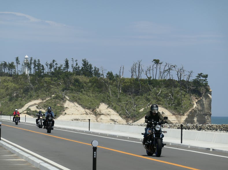 晴天時にこの海ロードをバイクで走ると爽快です。海鮮食堂と合わせツーリングやサイクリングを楽しむ人々が全国から集まります。