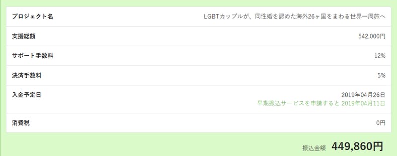 2019/04/01 15:58ご支援いただいた皆様へ先ほど メールにてご案内した内容と同じものをレポートにまとめました。 以下メールより引用 こんにちは。26回結婚式です。今回はご返金についてのご案内をさせていただきます。 口座情報に関するお願い支援者様の口座情報が必要となります。お振込み先の振り込み銀行名・支店名・口座種類・口座番号・口座名義人をご記入の上、このメールにご返信ください。 このメール送付より2週間以内のご返信をお願いいたします。メールの返信が2週間以内に確認できない場合、又は誤った口座情報をご記入いただいた場合、返金は出来かねますのでご了承ください。ご返金はGW明け5月7日(火)より順次開始させていただきます。返金までもう少々お待ちください。ご返金完了時に、こちらから確認メールを差し上げます。支援者様へお願い 現在、クラウドファンディング プラットフォーム利用手数料として、支援総額より17%(92,140円)の支払いが必要となっております。(支援総額542,000円-振込金額449,860円より。) クラウドファンディング会社への手数料として充てさせてもよろしい方、ご返金が不要もしくは、一部を手数料として使用してもよろしい方を募集しております。 返金が不要の方は、その旨をメールにてご連絡ください。 一部を手数料として使用してもよろしい方は、口座情報と返金を希望される金額をメールにご記入ください。 このメール送付より1週間以内のご返信をお願いいたします。 〇雑誌「ソトコト」本プレゼント<限定50名様>〇 ご返金が不要の方に限り、#26回結婚式の特集が組まれた雑誌「ソトコト」を、郵送にてプレゼントいたします。応募が50名を超えた場合、支援金額が多い方への発送となります。限定50名様の発表はプレゼントの発送をもって代えさせていただきます。 お忙しいところ申し訳ありませんが、ご返信よろしくお願い致します。 26回結婚式 もっと見るご支援いただいた皆様へ 【ご返金のスケジュールについて】