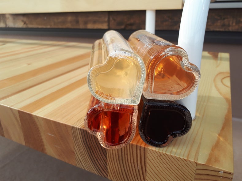 ぶどう栽培、ワイン造りに込めた愛情を、自社のロゴをイメージしたクローバー型のミニボトルにワインとして詰めました。飲んだみなさまが幸せな気持ちになりますように...