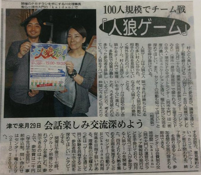 「人狼」というゲームを使った大きなイベントも開催しました。
