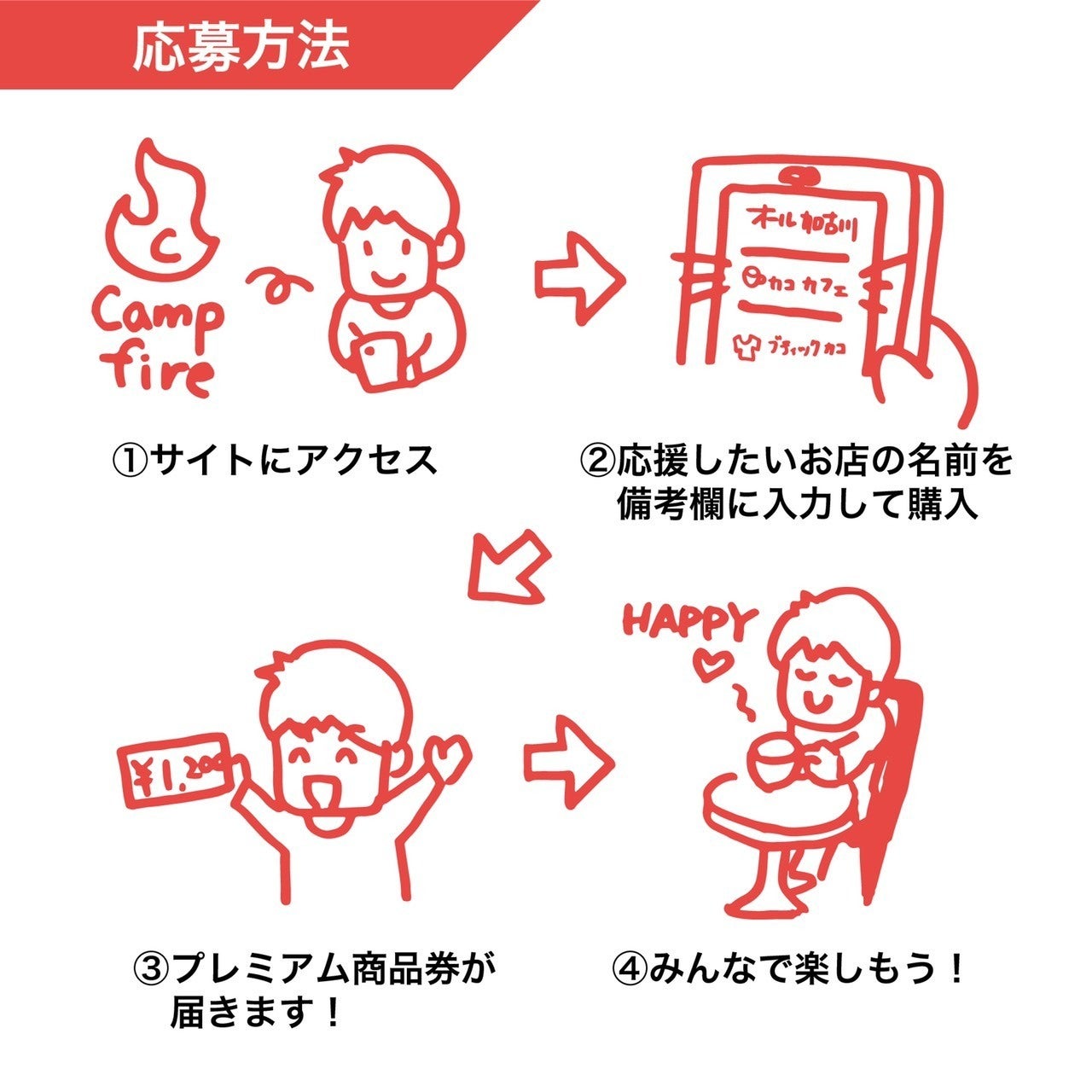 支援内容は「応援したいお店で利用できる商品券」をご購入いただくものです。