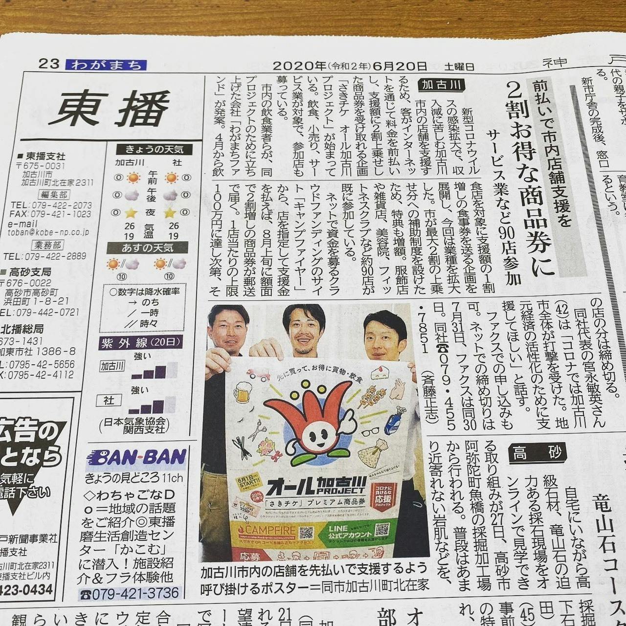 6月20日、神戸新聞朝刊にプロジェクトを掲載頂きました!!