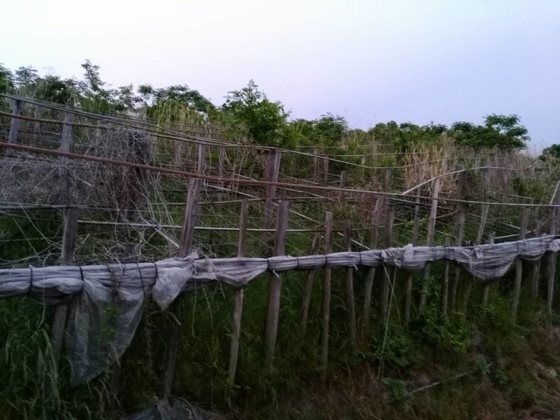 ▲ぶどう園の耕作放棄地。木や草が生い茂り現状復帰は難しい状況。このような耕作放棄地をこれ以上増やしたくありません。
