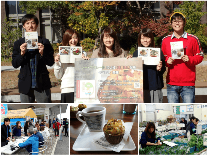キャンパスがある滋賀県草津市で、地場農産物のフードマイレージがゼロであることを広く知ってもらえるようなイベントを開催し、地産地消の環境面での貢献に対する認識が、地場農産物に対する選好や売上に与える効果を計測しました。