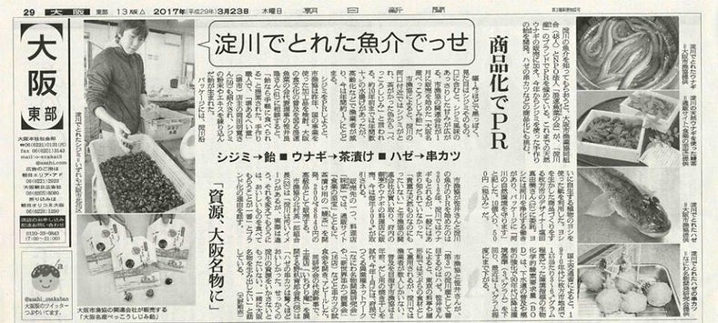 大阪市漁協協同組合の進めている六次産業化で生まれた商品は、色々なテレビや新聞等のメディアでも取り上げられ、淀川ブランドへの関心の高さを感じました。これが、(一社)淀川ブランド推進協議会を設立するきっかけにもなりました。