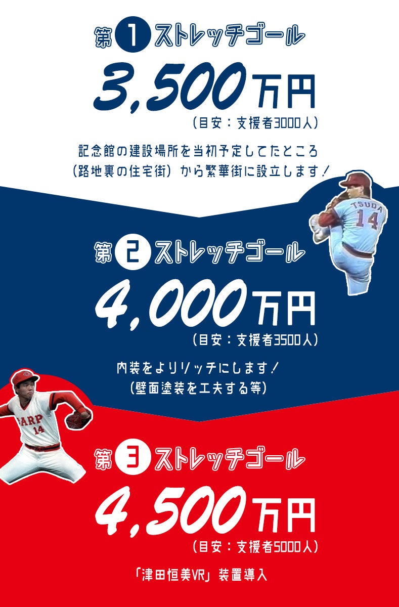 2019/05/10 22:55こんにちは。津田大毅です。 日頃より、ご支援頂き誠にありがとうございます。 クラウドファンディング終了後も、応援のお言葉を引き続き頂戴しておりとても励みにさせて頂いております。 大変長らくお待たせいたしました。 津田恒美記念館の開館日が決定いたしましたのでご報告いたします。 【津田恒美記念館の開館日】 5月30日(木)正午より オープニングセレモニーを開催させて頂きます。 セレモニーは一般のファンの方々もご参加して頂けますので、 是非お越しください。 当初はプレオープン期間を設ける予定ではございましたが セレモニー終了後グランドオープンいたします。 開館時間に関して 年中無休ですが月曜日は私津田大毅はお休みを頂いております。 ・カープホームゲームの日 10時から試合終了後1時間 ・ホームゲームが無い平日 10時から17時 ・ホームゲームが無い土日祝 10時から20時 記念館入館料に関して ・大人一般 500円 大人団体 400円 ・学生 400円 学生団体 300円 ・小中学生 300円 ・小学生以下の方は無料 ※セレモニー招待券をお持ちの方は来館時にご提示をお願い致します。 紛失又は当日に招待券をお忘れになられた際はスタッフにお申し付けください。 ※プレオープン招待券をお持ちの方は別途ご優待を致しますので招待券のご提示をお願い致します。 紛失又は当日に招待券をお忘れの方はスタッフにお申し付けください。 ※記念館の営業時間・料金は変更となる可能性もございますのでご了承ください。 当日の詳細な時間などは決まり次第こちらのレポートでご報告させていただきます。 記念館の場所・内装に関して 住所 広島県広島市南区荒神町1-8 赤ヘルツインⅡ-2F 外観写真 カープロード沿いのこちらのビル内にオープンいたします。 館内へのご案内 1. カープロード沿い。 旧・鯉勝屋さんの店舗入口の右側に入口がございます。 ボールのマークが目印です。 2. 階段を上っていただきます。 現在は紙を貼っておりますが、父のパネルがこちらに飾ってありあります。 3. 先程の階段を上っていただき左側に通路がございますので道なりにお進みください。 4. 通路をまっすぐ進んでいただくと赤い扉がございます。 こちらが記念館とカフェの共同入口となります。 店舗名 Carp Load Cafe Stadium(カープロードカフェスタジアム) 営業形態 カフェ・スポーツバー 管理会社 スポーツファンベース株式会社 営業時間 モーニング 7:00~9:30 ランチ 11:30~14:30 ディナー 18:00~22:00 ※営業時間は変更になる可能性がございます。 今月の9日にオープンしましたが、現在はプレオープンという形になっておりメニューも軽い軽食とドリンクのみとなっております。 カープのホームゲームの日はドリンクのみの提供。 飲食物の持ち込みOKです。 今後は本格的な食事とデザートも増やしていく予定ですので今しばらくお待ちください。 私はこちらのカフェでドリンクやお食事の提供も致しますので直接のお問い合わせにもご対応させていただきます。 5. 店舗内に入っていただき右手に進んでいただきます。 6. バーカウンターの前を通っていただくと記念館スペースの入り口となっておりますので、オープンいたしましたらこの順路でご来館頂く形となります。 今現在も改装途中ですので、ここに看板等も設置する予定です。 ショーケースなどが設置されましたら順次レポートにて報告いたします。 7. 荒神陸橋側にも入口がございます。 実はこちらのビルは3F~6Fまでがホテルとなっております。 宿泊客の方もご利用されますが、来館の際にはこちらから入って頂いても問題ございません。 8. 入口を入っていただき奥の方へと進んで頂きます。 9. エレベーターがございますのでカープロード沿いの階段が厳しいという方はこちらからお入り頂き2Fへとお進みください。 10. 2Fで降りていただき左側に進むと先程の記念館・カフェの共同入口となります。 以上が現段階の状況報告となります。 記念館の設立を思い立って3年余り。 当時は山口県にある父の実家を記念館にするという所からスタートいたしました。 色々な方にご相談・カープファンの方の声を聴く中で広島県に設立することを決意しカープロード沿いに記念館を作りたいと思ったところからここにたどり着きました。 しかしながら、私一人の力では到底たどり着けなかったと思います。 球団・広島東洋カープのご許可。 カープOBの皆様。 広島県民の皆様のご協力。 地元企業各社様。 父の地元・山口県和田地区の皆様。 FAAVOスタッフの皆様。 そして何よりも、このクラウドファンディングで募金をして頂いた皆様のお力添えがあったからこそこの企画を実現する事が出来ました。 本当に、本当にありがとうございます。 当初の予定である 7月20日(津田恒美命日) 8月1日(津田恒美誕生日) より早めの開館となりますが、 2019年5月30日(木) 津田恒美記念館がオープンいたします。 皆様の御来館をスタッフ一同心よりお待ちいたしております。 こちらのレポ