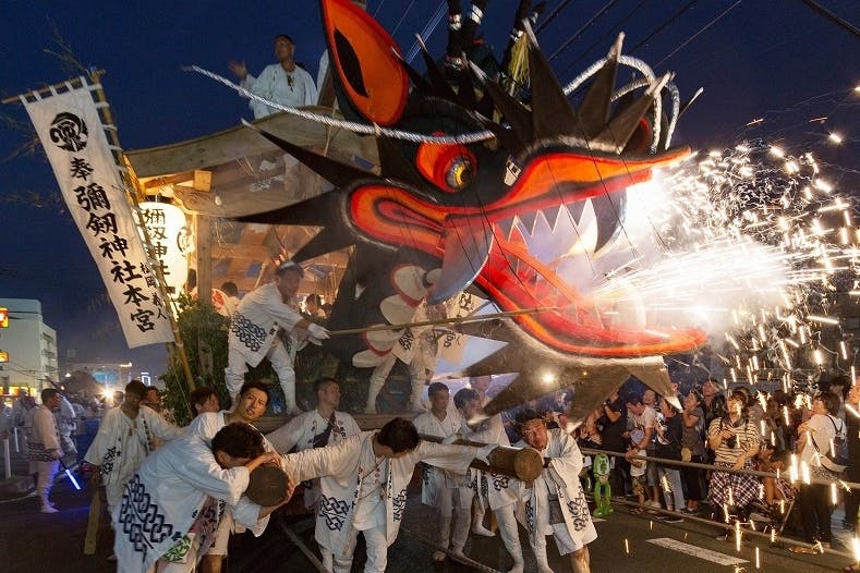 山車そのものに花火を使用するまつりは全国でも珍しく、他のまつりにはない独自の迫力が演出されます。