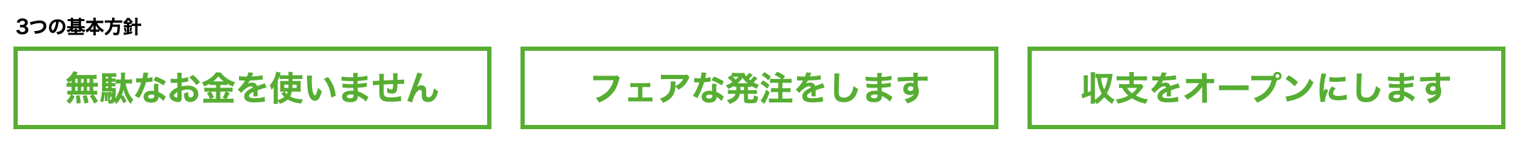 ▶︎調達、サービス契約等、全ての支出は原則複数見積の取得等を行い、安価なものを選択します。
