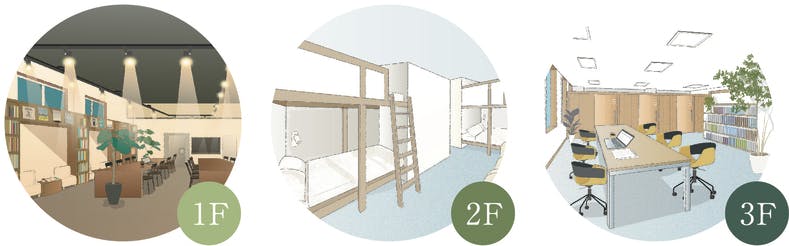 1F カフェ・バー / ミーティングルーム / ゲストハウス・コワーキングレセプション