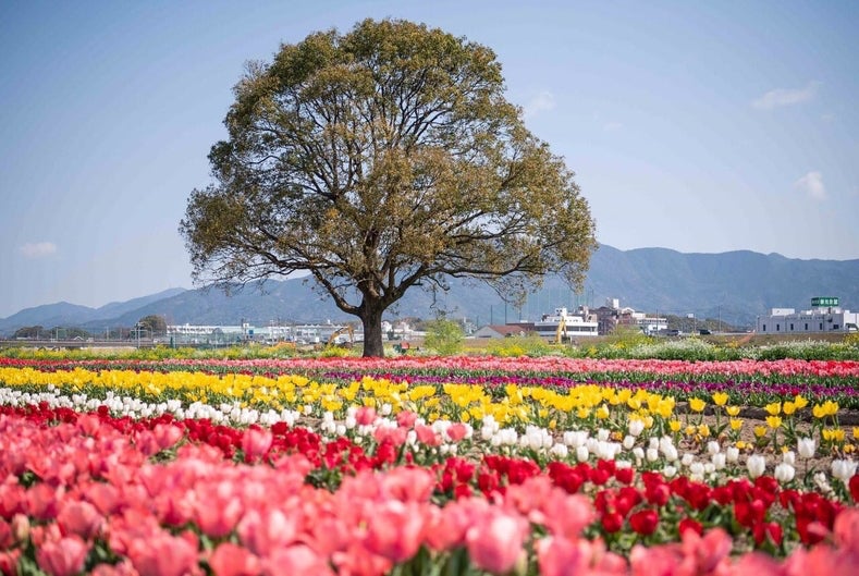 菜の花、チューリップ、桜など美しい花が咲いていたり、