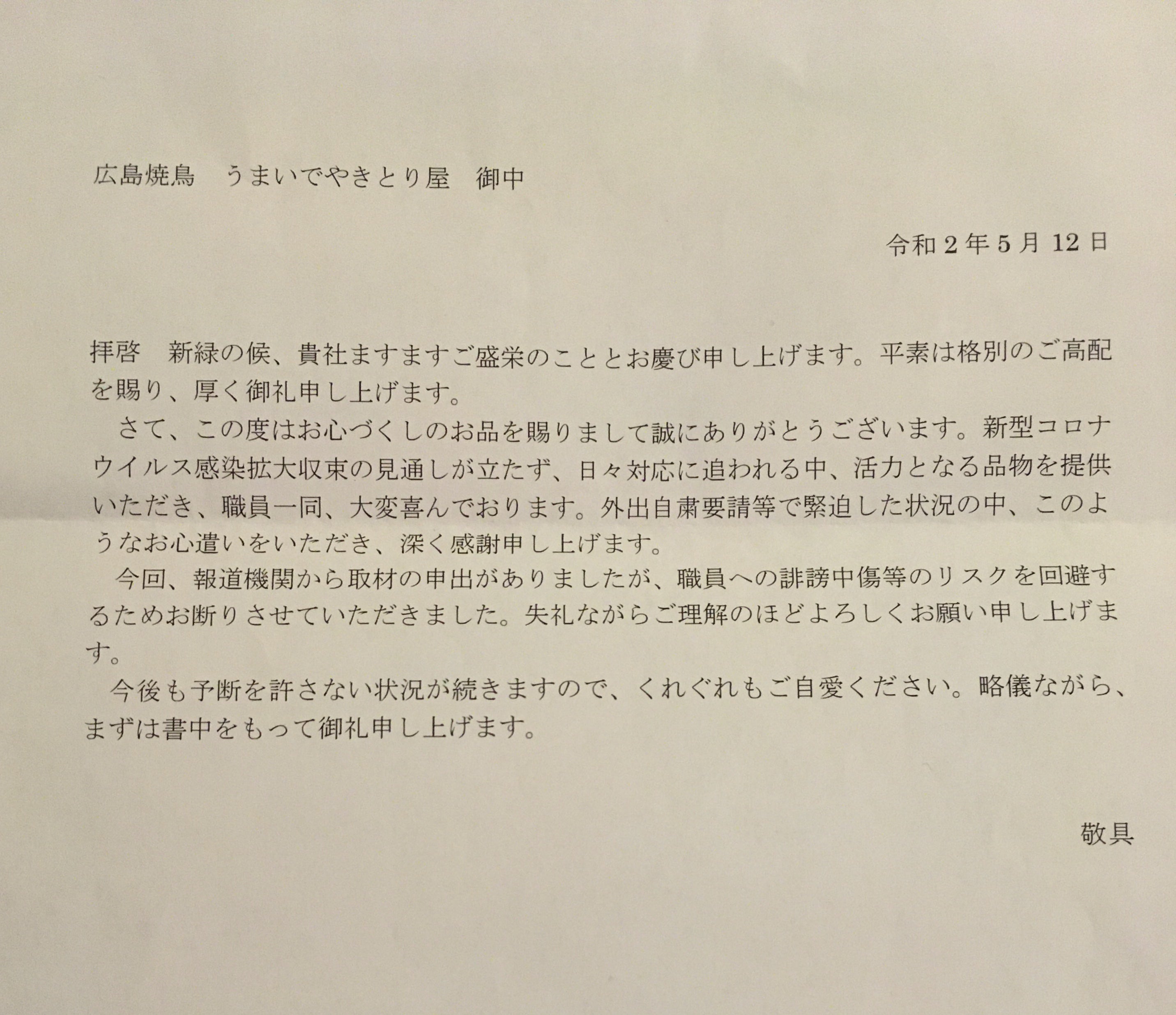 広島の病院で是非私たちの病院にも焼き鳥丼無償提供券がほしいという