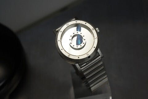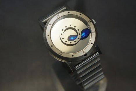 液体金属が変形して時針になる、ターミネーター感満載のリキッドメタルウォッチ。