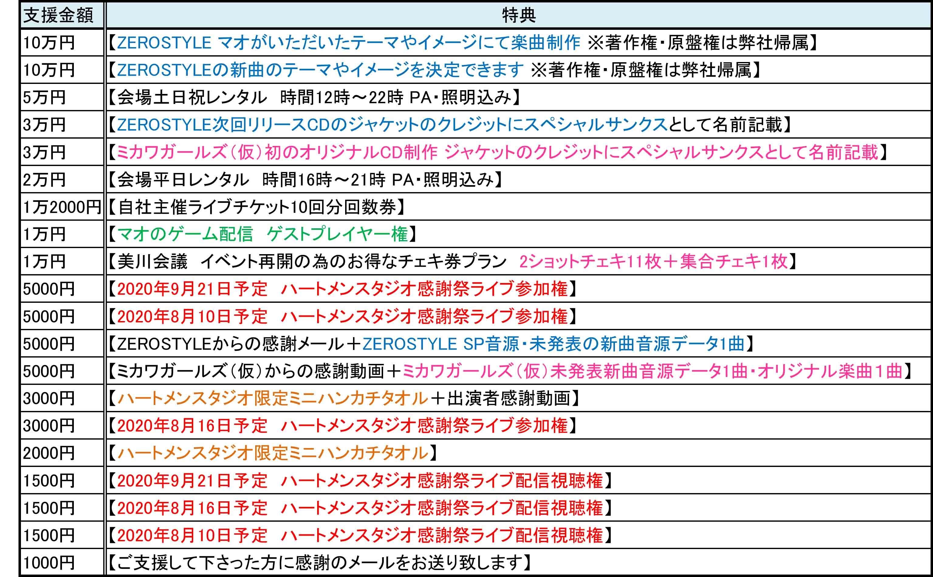 ご支援いただいた皆様ありがとうございます コロナ前に行っていたイベントが早く元通りに行えるよう自粛及び準備を行っています。 音楽ライブ・お笑いライブ共に早く再開できるよう、そして再開できるタイミングでハートメンスタジオが存続できていれるように全力で対応させていただきます。