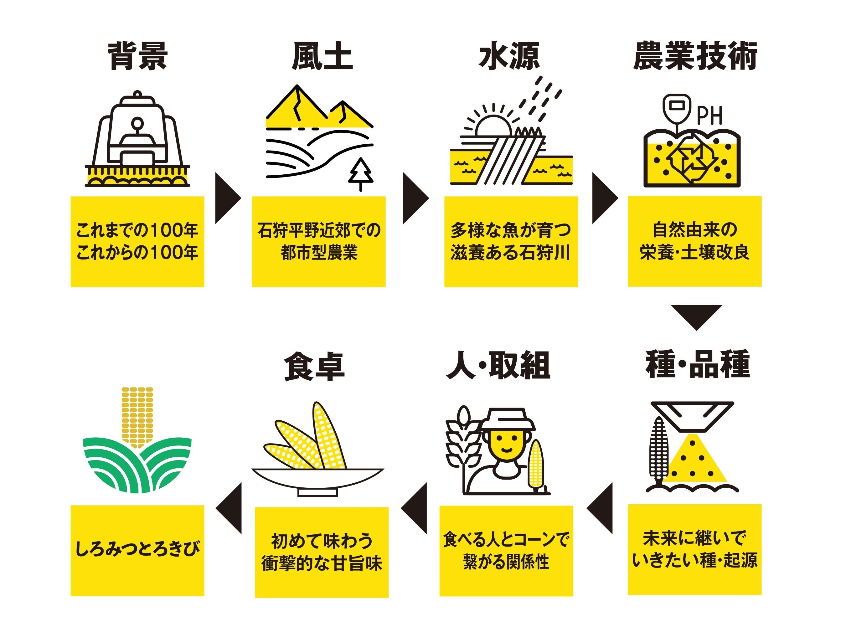 世界一おいしいコーンを作り続け、江別にいけばもぎたてのおいしいコーンが食べられるという安心感。その安心感を、Corn Land HOKKAIDOとして具体的に書いてみました。