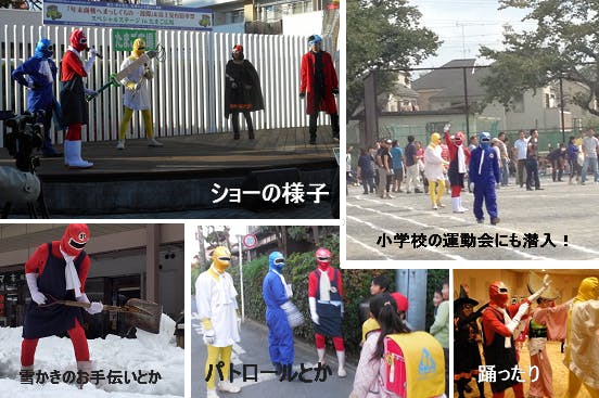 こんにちは。私たちはNPO法人くにたち富士見台人間環境キーステーションのやほレンジャーチームです。国立市富士見台地域の人々のつながりをつくりまちを元気にするべく、商店主や大学生・市民・行政が一体となって活動しているNPO法人で、KFの愛称で親しまれています。 KFは商店街を地域コミュニティの拠点と考え、商店街の空き店舗を利用した地域活性化活動に取り組んでいます。 サイフォンで淹れるコーヒーや学生考案のランチメニューが名物の コミュニティカフェ「ここたの」、 市民向けゼミナール市民講座など地域における文化体験の場である 多目的ホール「KFまちかどホール」、 その日の朝地元でとれた野菜が店頭に並ぶくにたち野菜と 地域物産の店「とれたの」、 作り手と買い手を結びつけることでコミュニティ形成を図る 手作り雑貨とリサイクル家具の店「ゆーから」といった4つの事業に加え、 無店舗事業としてフリーペーパー「やっほー」の発行やローカル ヒーロー「やほレンジャー」の活動、その他商店街との連携事業なども行っています。 普段、私たちやほレンジャーチームは毎週金曜日のやほレンジャーによる「やっほー」配布やKF店舗でのやほレンジャー関連グッズ販売を行っています。 保育園や障がい者支援施設での交流、商店街や国立市主催のイベントなどへのショー出演も行うなど、地域ヒーローのやほレンジャーを通して商店街や地域の活性化を目指しています。 最近は地域の子どもからの人気も高まり、動画や主題歌、ダンスの作成といった新事業や日本ローカルヒーロー祭への出演を果たすなど、対外的な注目度も高まっています。 そんなやほレンジャーですが、大恐慌を引き起こす宿敵ダイキョー皇帝との戦いを繰り返すうちにスーツが大きなダメージを受けてしてしまいました。これを機にスーツをグレードアップしたいのですが、作り直すにはわずかに資金が足りない状況です。  みなさまから温かいご支援をいただければ幸いです。  谷保の商店街を守るヒーロー、やほレンジャーを  どうぞよろしくお願いいたします。 △今回のチームのメンバー。商店街のお祭りのお手伝いなども行っています! ■NPO法人くにたち富士見台人間環境キーステーション http://www.human-environment.com/ ■やほレンジャーブログ http://kfyahho.exblog.jp/ ■やほレンジャーTwitter https://twitter.com/yahoranger