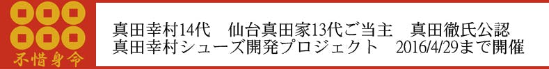 写真で靴をお持ち下さっているのが、幸村14代真田徹さんです。幸村仕様のジャケットもご愛用頂いております。プロジェクト詳細は下記バナーをクリックしてご覧下さい!