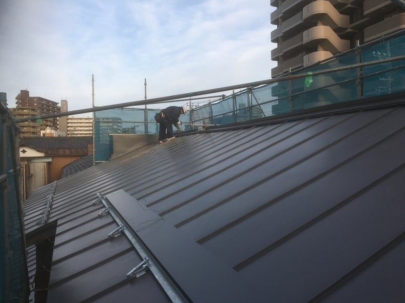 <新しい屋根は、ガルバリウム鋼板フッ素加工葺き>