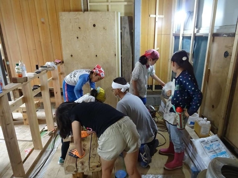 市主催のまちづくり事業をきっかけに始まった僕たちの取り組みですが、行政からの補助金に極力頼らず、民間の立場で「自立」して事業を行うことにこだわりをもっています。自分たちの限られた自己資金と借入金とで事業を実施するため、要所ではプロの職人さんに入って頂きながらも、自分たちでもできる作業(解体・塗装・清掃等)は、DIY(Do it yourself:自主施工)で行っております。