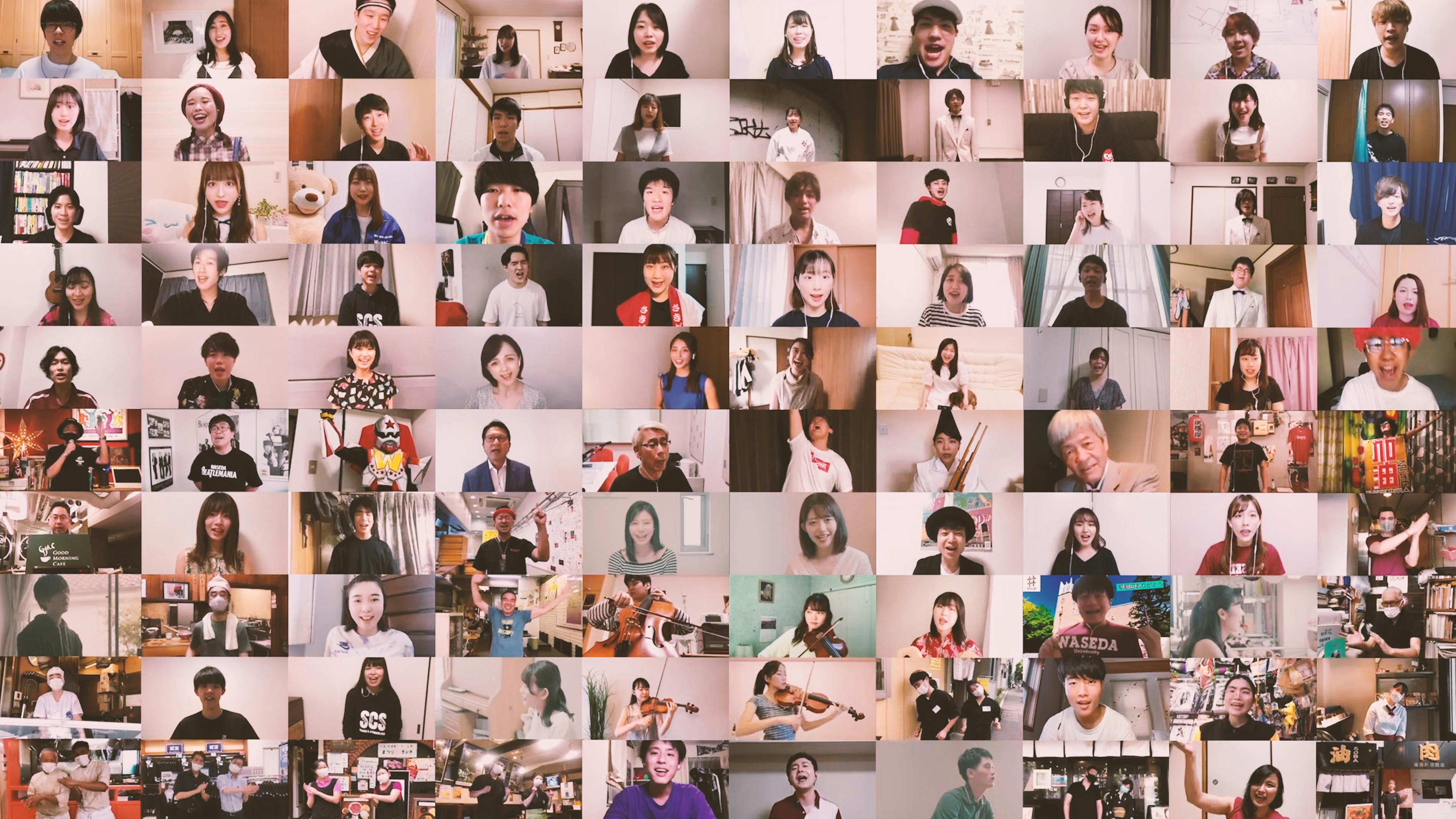 望んでいた学生生活が送れず悔しい日々が続く中、どうにか全国の早稲田生に少しでも早稲田を届けられたらと、「紺碧の空」を21団体総勢81名で合同演奏を行いました。この企画は、SNSにて反響をいただき地上波含め各種メディアに取材を受けました。