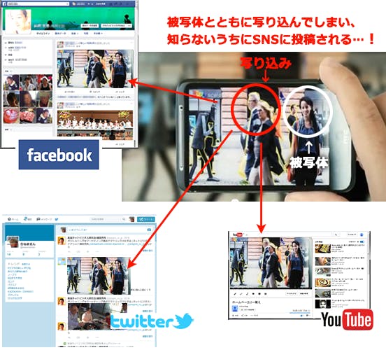 FacebookやtwitterなどのSNSの普及により、街や施設内で撮った写真が気軽にインターネットに公開できるようになりました。このSNSは、近況などを共有し友だちと繋がることができる、楽しく便利なツールで多くの人々が利用しています。