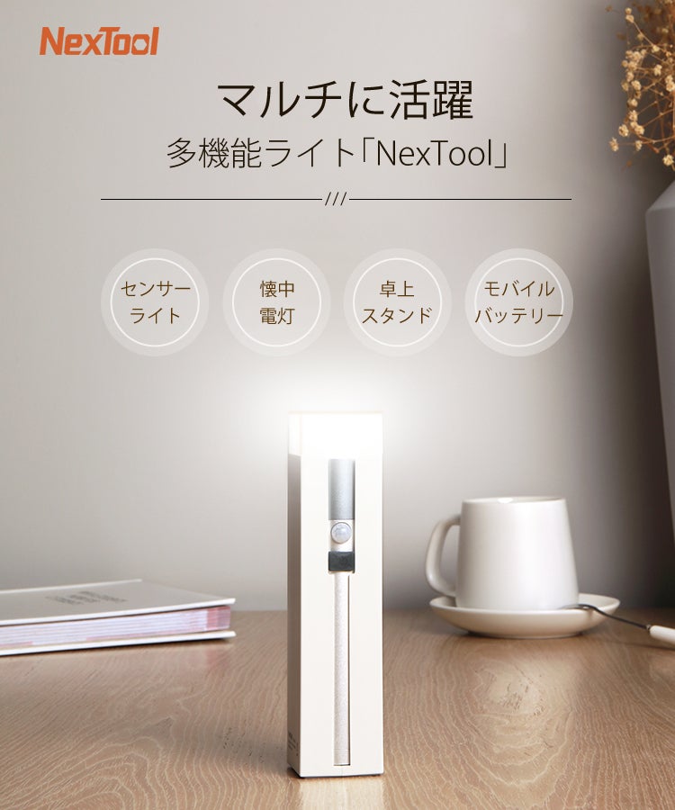 「NexTool」は、1台で4役を果たせる世界一賢い多機能ライトです。
