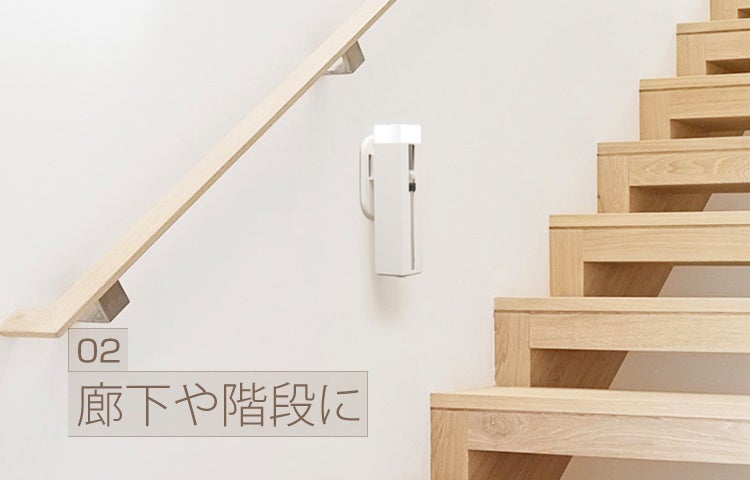玄関、廊下や階段、トイレ、ベッドサイド、クローゼットなど、必要に応じて色んな場所に設置できるので、室内で大活躍。