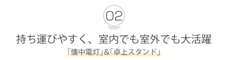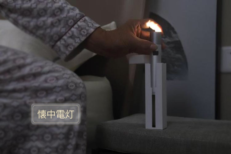 電灯をホルダーから取りだし、室内でもアウトドアでも使える「懐中電灯」に早変わり。