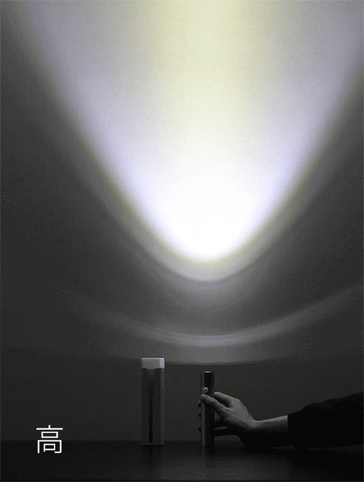 高モード:150mまで広範囲を明るく照らす。