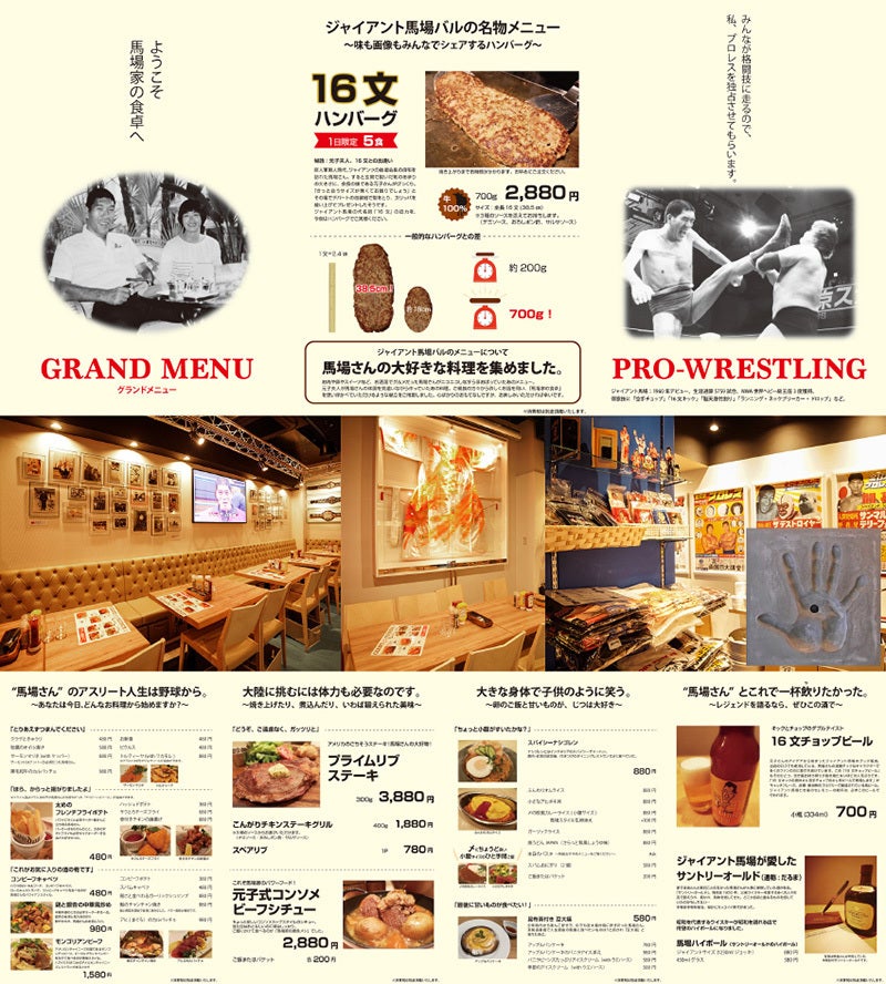 また、「ようこそ馬場家の食卓へ」と題し、ジャイアント馬場が愛したメニューを揃えました。店内の全てが「聖地」として、皆さんの心の中に刻まれることと思います。