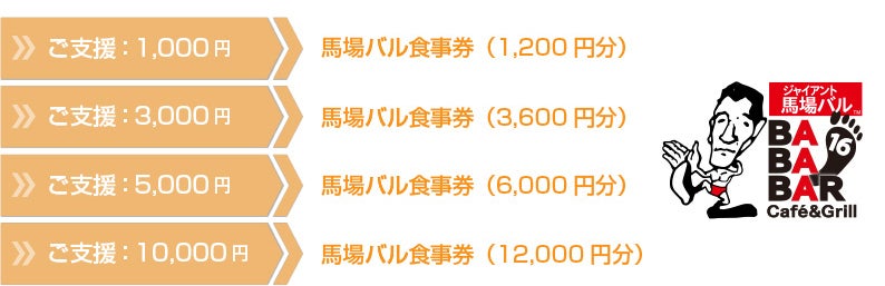 2021/06/20 16:33【ジャイアント馬場さんの聖地「馬場バル」の存続のためにご支援ください】のプロジェクトをご支援いただきまして誠にありがとうございました。あらためて心より感謝申し上げます。「馬場バルお食事券」について皆様にお知らせいたします。<お食事券の有効期限について>クラウドファンディングのリターンでお届け致しました「馬場バルお食事券」の有効期限が当初来月3月末まで、その後6月30日(水)まで延長しましたが、現在当店は緊急事態宣言に続き、まん延防止等重点措置の期間も一時休業中でございます。現在有効期限の再度の延長を考えております。一時休業明けのお伝えになるかと思いますが、有効期限が決まり次第改めてご連絡差し上げます。お食事券は大事に保管して頂くようお願い致します。ご迷惑をお掛けしますが、何卒ご理解頂くようお願い致します。 もっと見るお食事券の有効期限についてお知らせ