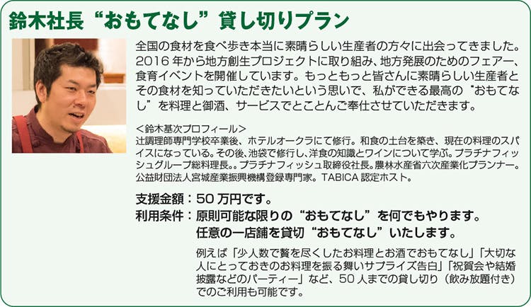 【3】「鈴木社長“おもてなし”貸し切りプラン」で支援
