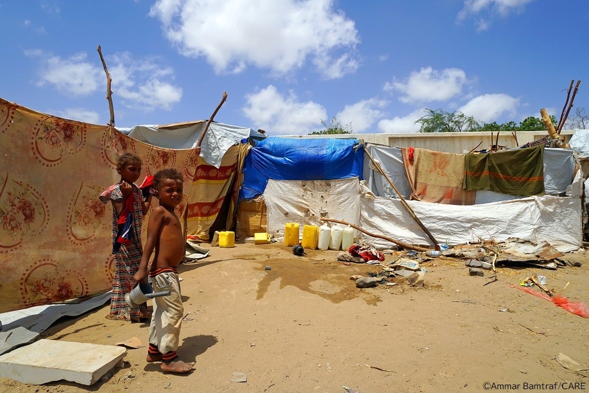 水を汲みに行くアデン(イエメン)のキャンプの子どもたち