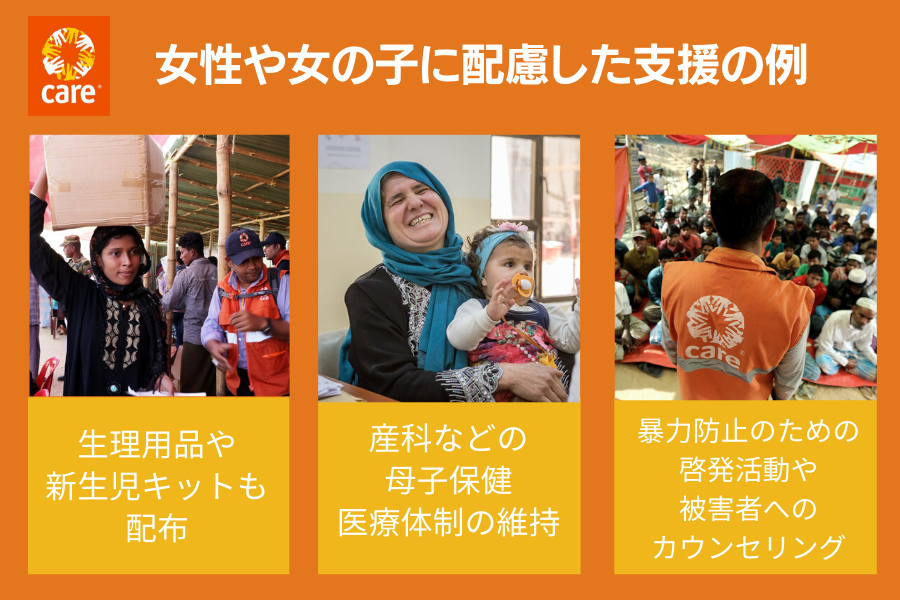 私たちCAREは、女性や女の子のニーズに的確に配慮し、支援活動を行っていきます。