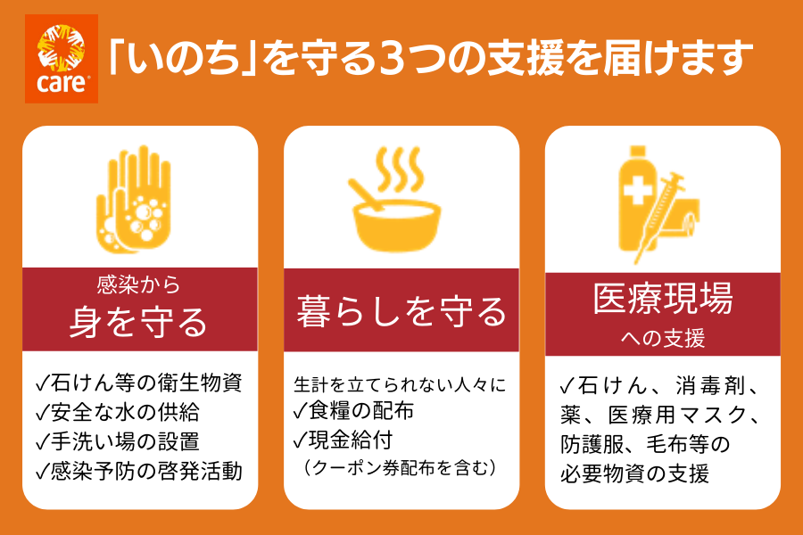 しかし、私たちCAREは、信じています。ウイルスだけではなく、人間が誰かをケアする心、「思いやり」も国境を越えて届けることができ、それにより救える命があると。