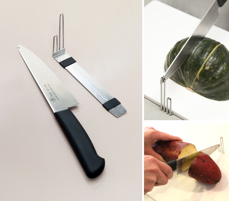 テコの力を使った革新的なアイディアと、刃物の産地として有名な岐阜県「関」の技術が合わさった万能包丁 「楽」。