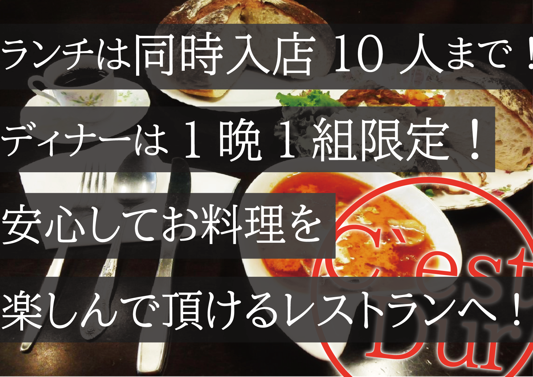 ご予約・ご来店頂いた方々だけのプライベートな空間で、安心したお食事とサービスをご提供させて頂きたいと思っております。