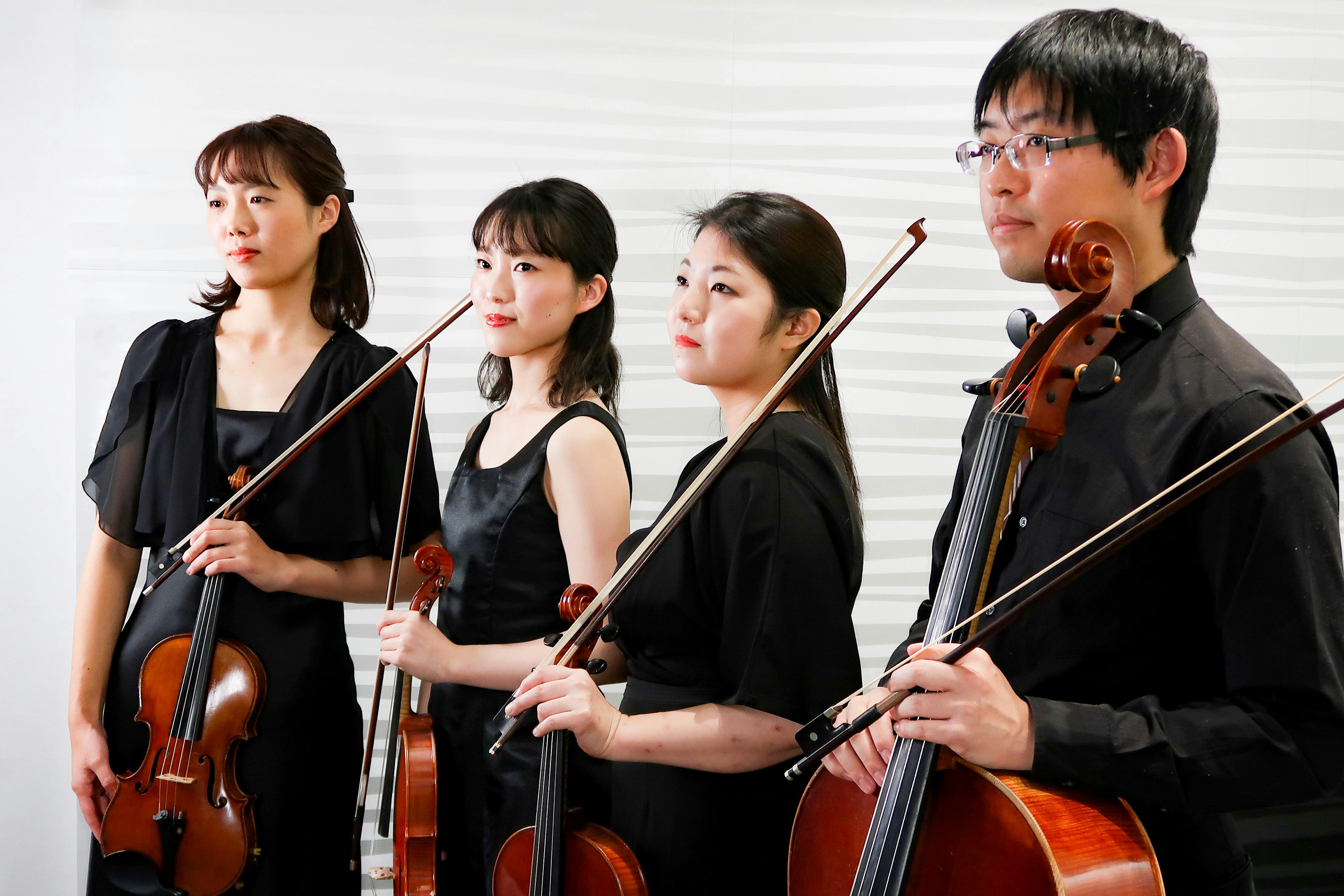 2021/02/03 10:44山田弦楽四重奏団2013年6月、愛知県立芸術大学の学生により結成。日本人作曲家を中心とした近現代作品を主に取り上げ、精力的に活動している。団体名は第一ヴァイオリンの苗字である山田と、日本を代表する作曲家の一人である山田耕筰先生の名前を冠する。学内選抜者による「室内楽の夕べ」コンサートに2年連続で出演。第3回宗次ホール弦楽四重奏コンクールに出場し、原田禎夫、ヴァーツラフ・レメシュ、百武由紀各氏のマスタークラスを受講。これまでに百武由紀、花崎薫の各氏に師事。[1st Violin] 山田 貴子 (Takako Yamada)滋賀県東近江市出身。滋賀県立石山高等学校音楽科、愛知県立芸術大学音楽学部器楽科、同大学大学院博士前期課程修了。2013年度山田貞夫財団奨学生。2016年度北野生涯教育振興会奨学生。これまでにヴァイオリンを塩沢まり子、池川章子、白石禮子、D・ノーラン、辻井淳の各氏に師事。現在、オーケストラの客演や室内楽を中心に活動している。[2nd Violin] 和田 有里奈 (Yurina Wada)岐阜県岐阜市出身。愛知県立芸術大学音楽学部器楽科卒業。これまでにヴァイオリンを若林亜由、加藤瑞木、福本泰之、辻井淳の各氏に師事。現在、東海地方を中心に演奏活動と後進の指導にあたっている。[Viola] 西尾 結花 (Yuka Nishio)愛知県春日井市出身。名古屋市立菊里高等学校音楽科、愛知県立芸術大学音楽学部器楽科卒業。これまでにヴァイオリンを長友野慈呼、福本泰之、林茂子、D.ノーラン、辻井淳の各氏に師事。室内楽やオーケストラではヴィオラ奏者としても活動。現在、東海地方を中心に演奏活動と後進の指導にあたっている。[Violoncello] 小野江 良太 (Ryota Onoe)愛知県西尾市出身。愛知県立芸術大学音楽学部器楽科卒業。これまでにチェロを鈴木康史、林俊昭、松波恵子、野村友紀の各氏に、ピアノを深谷直仁、榊原祐子、田村明子各氏に、和声を林由美子氏に師事。現在、作編曲家、チェロ奏者として活動している。小野江音楽工房代表。曲目吉松隆:アトム・ハーツ・クラブ・カルテット Op.70Takashi Yoshimatsu:Atom Hearts Club Quartet山田耕筰:弦楽四重奏曲第1番 より 第1楽章Kósçak YAMADA:String Quartet No.1 in F major, 1 mov山田耕筰:弦楽四重奏曲第2番Kósçak YAMADA:String Quartet No.2 in G major安部幸明:弦楽四重奏曲第7番Komei Abe:String Quartet No.7第1楽章:Allegro non troppo第2楽章:Scherzo presto第3楽章:moderato assai第4楽章:Finale; Presto#バイオリン #ヴァイオリン #チェロ #コロナに負けるな #ヴィルトゥオーゾバイオリン専門店 株式会社ヴィルトゥオーゾ 代表取締役社長 杉田直樹 もっと見る