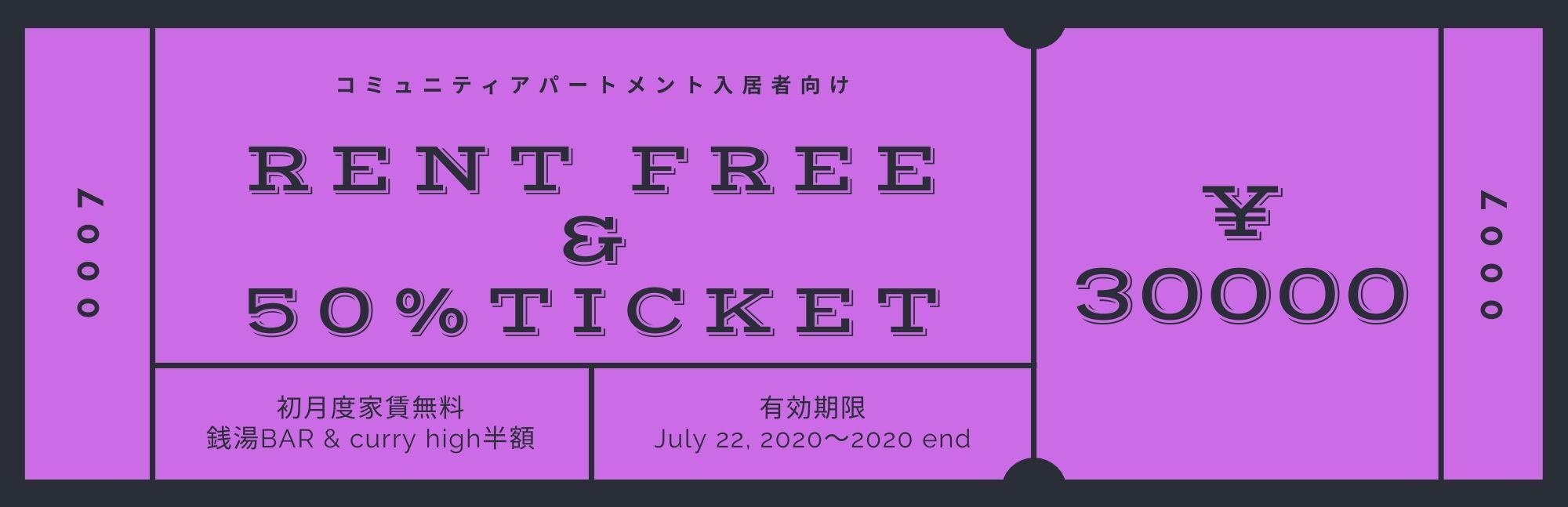 また「銭湯BAR」のドリンク&フードと「curry high」の参加費が2020年度半額になるチケットです。(※銭湯とサウナは入居者は元々無料です)