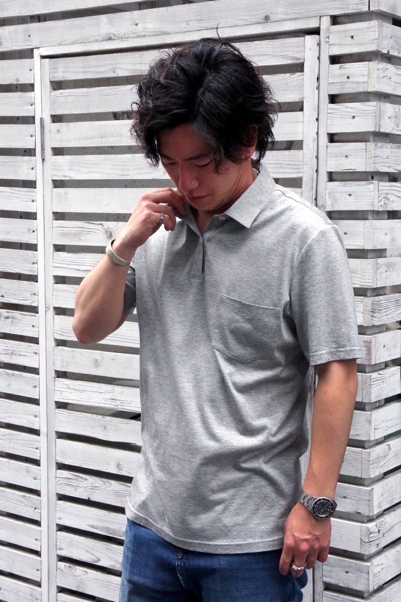 汗染みが生地表面に響かない特殊生地で、見た目も着心地も上品なアイテムになるよう開発を進めました。ポロシャツと聞くとカジュアルなイメージがありますが、高品質生地、国内縫製によってワンランク上のスタイリッシュポロに仕上げています。
