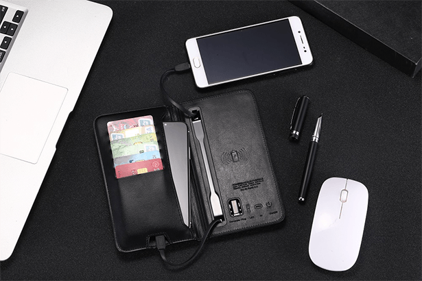 初めて見たとき、シンプルな携帯ケースだと思いました。しかし説明を聞いてみると、携帯充電器だったのです。しかもワイヤレス充電器付き!